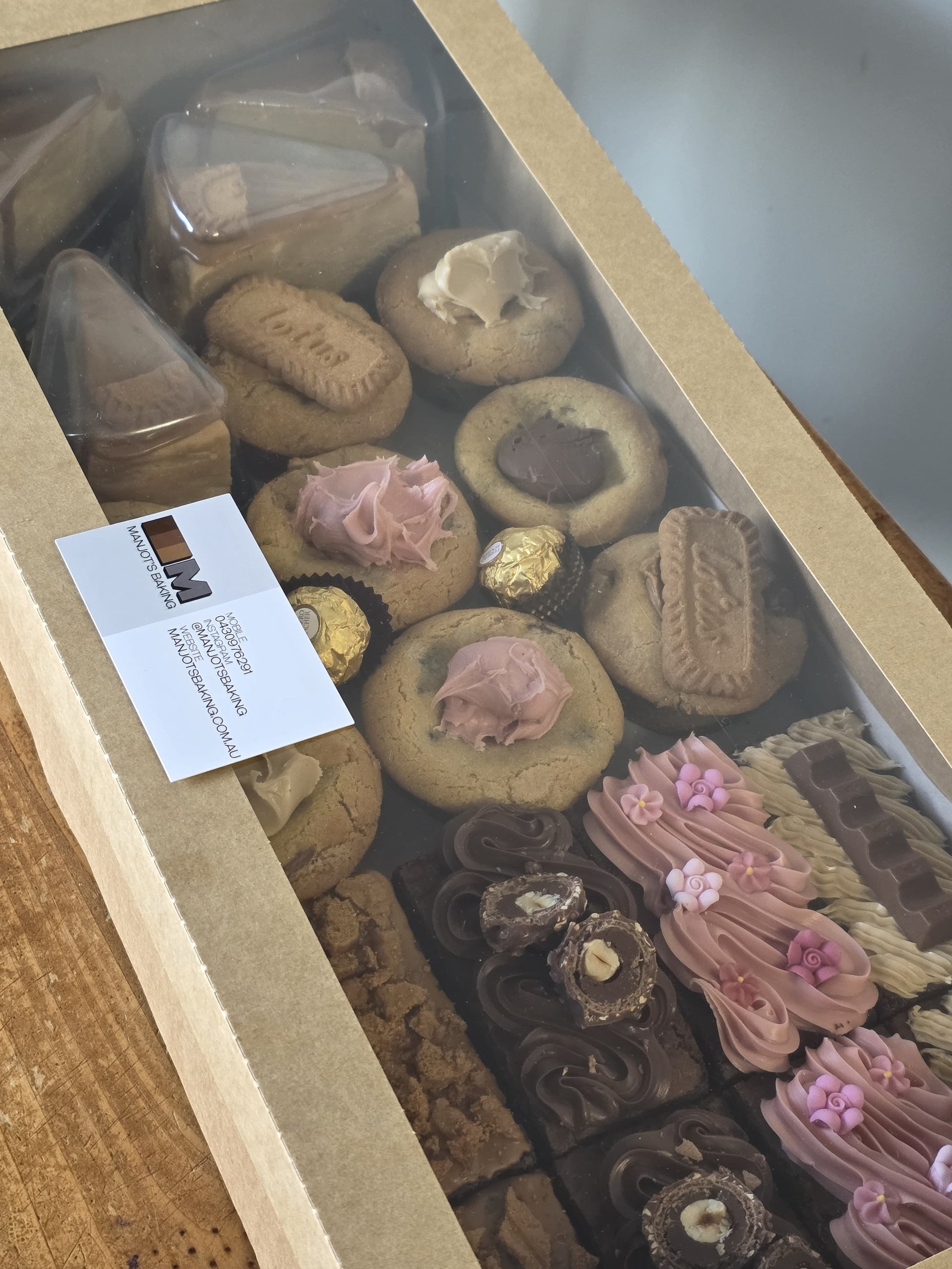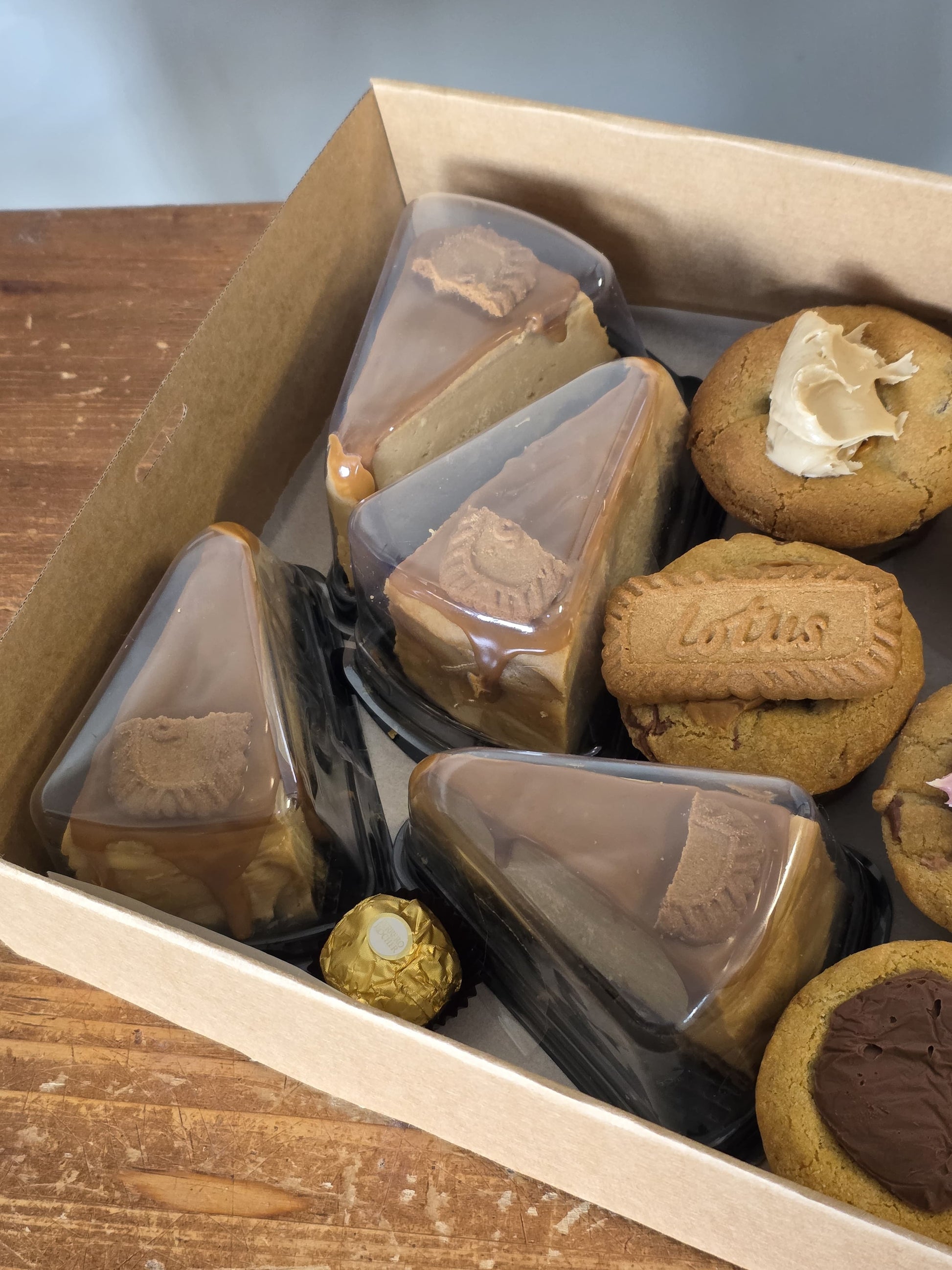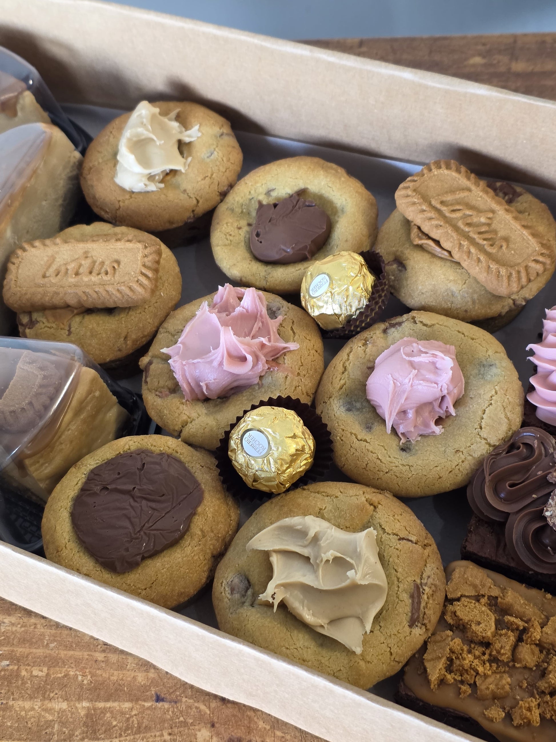 Discover the ultimate gift with our expertly curated Gift Box, available in two convenient sizes to suit any occasion. Each box features an enticing selection of beautifully decorated brownies, rich and indulgent cookie pies loaded with luscious fillings, and irresistibly decadent cheesecake slices. Perfectly crafted to impress, these treats combine gourmet quality with elegant presentation, making your gift both memorable and delicious.