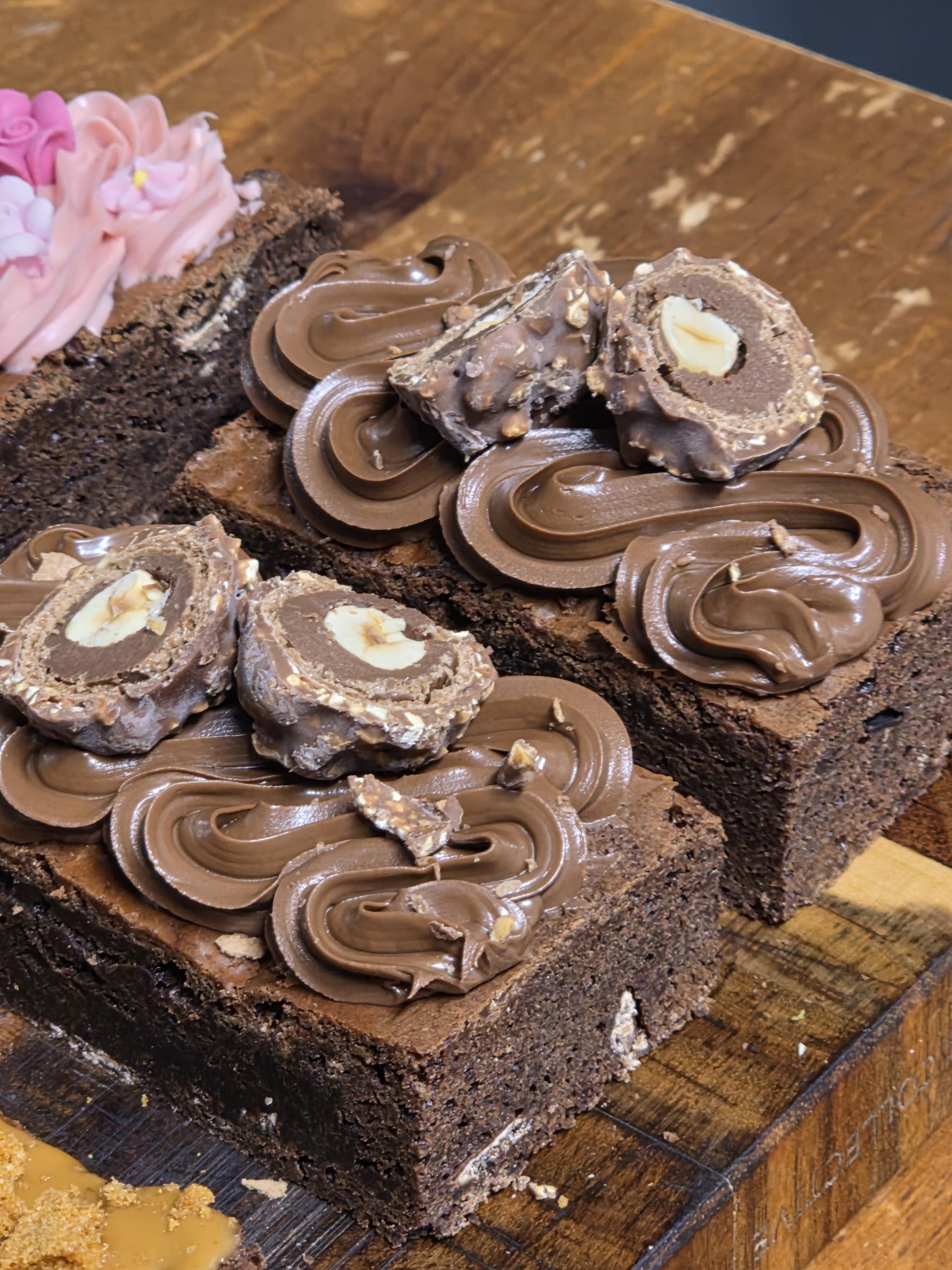 - 2 x Nutella and Ferrero Rocher topped Brownie (5cm x 10cm)
